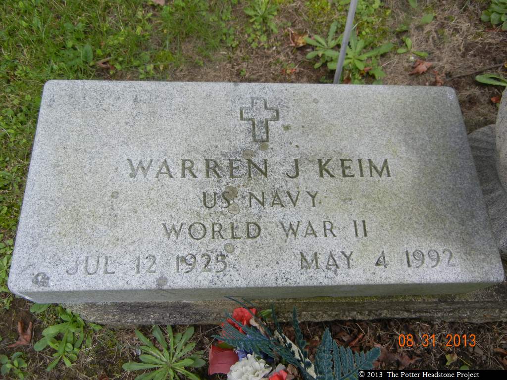 Surviving besides his wife are a son, Warren J. Keim Jr. of Clyde, Ohio; a daughter, Mrs. Robert (Barbara J.) Jones of Hamlin, N.Y.; four granddaughters; three sisters, Mrs. Alice Reichard of Canton, Ohio, Mrs. Ruby Ruth of Emmaus and Mrs. Elsie Larson of Bethlehem; a brother, Jacob Keim , of Bath; and several nieces and nephews.