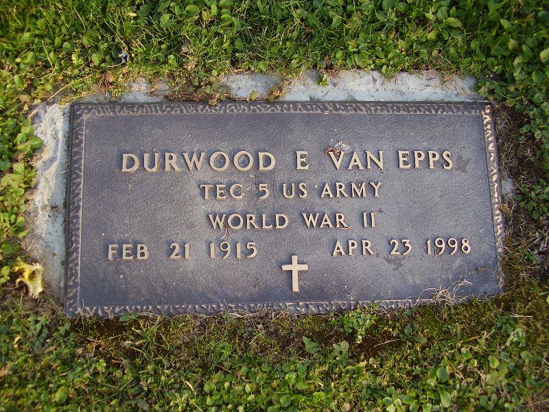 | Van Epps | Durwood E. | February 21, 1915 | April 23, 1998 | Van Epps, M. Margaret | WWII Tec 5 US Army See Also Military Plate |