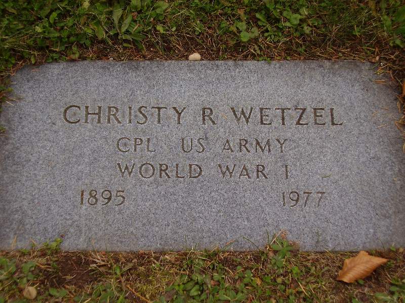 | Wetzel | Christy R. | 1895 | 1977 | Wetzel, Melda V. | World War I Cpl. US Army See Also Military Stone |