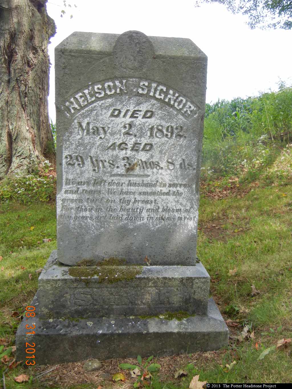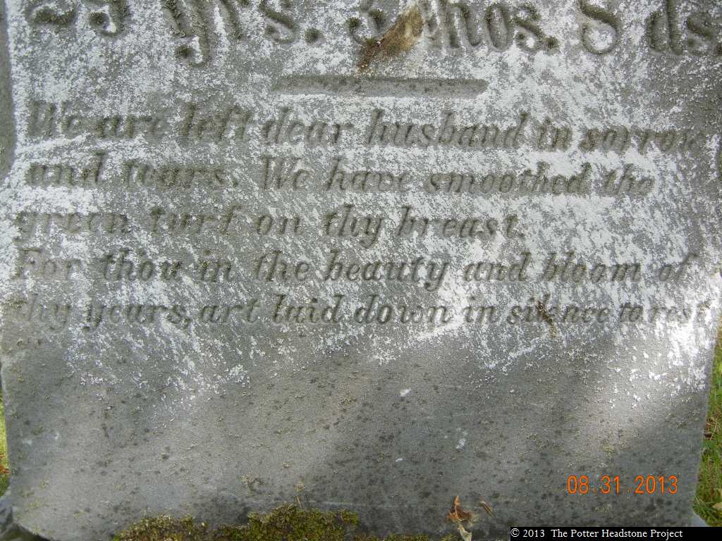 Notes: 'We are left dear husband in sorrow and tears. We have smoothed the green turf on thy breast. For thou in the beauty and bloom of thy years art laid down in silence to rest.'