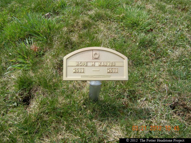 Shinglehouse, PA---Hope M. Karver, infant daughter of John M. and Melinda S. Donohue Karver, was stillborn on Saturday, October 8, 2011 at Sisters of Charity Hospital in Buffalo, NY.