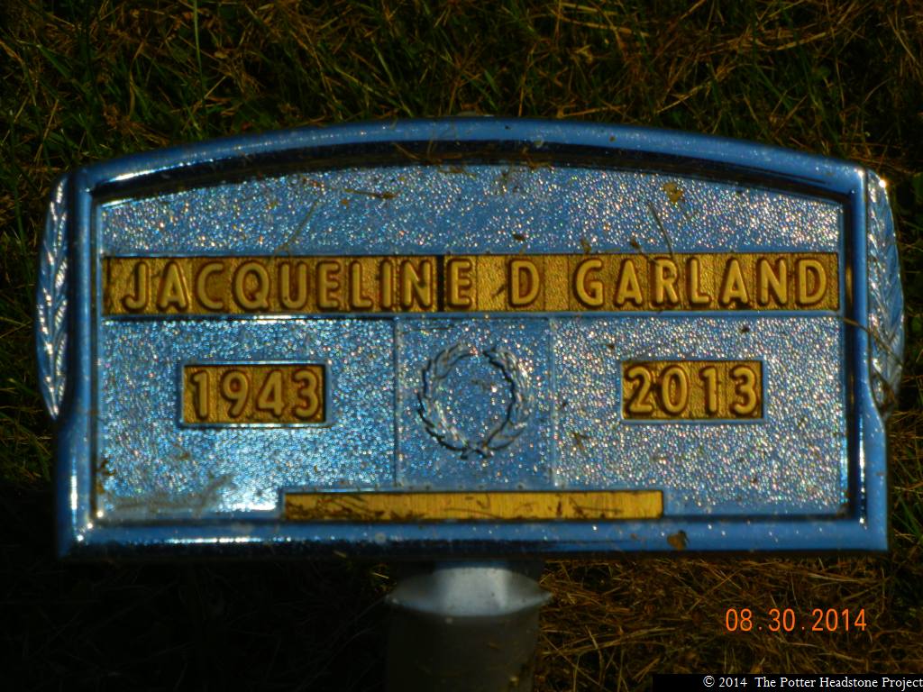 Jacqueline D. “Jacqui” Garland, 70, of Shinglehouse, PA, passed away unexpectedly on Friday, September 20, 2013 at the Olean General Hospital, Olean, NY.