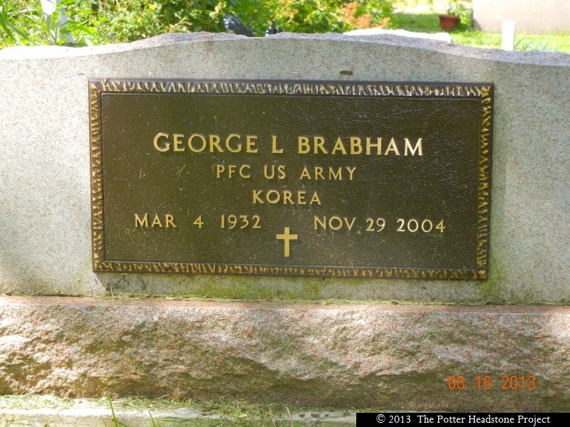| Brabham | George L. | March 04, 1932 | November 29, 2004 | Anna S. Brabham | Korean War PFS US Army See Also Military Plate |