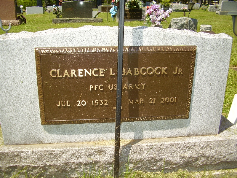 | Babcock | Clarence L. | July 20, 1932 | March 21, 2001 | Babcock, Virginia M | PFC US Army Korean War See Also Military plate |