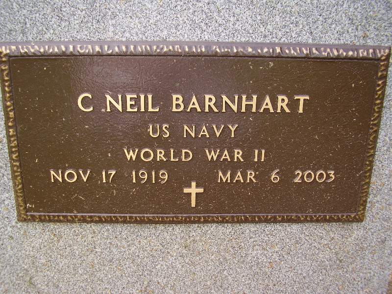 | Barnhart | C. Neil | 1919 | 2003 | Barnhart, H. Marjorie | WWII US Navy See Also Military Plate Shinglehouse Vol. Fire Dept. |
